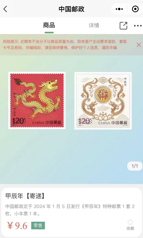 △中国邮政微商城小程序上的四方联龙年邮票
