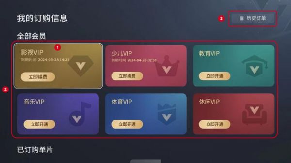 订购信息透明:通过设置订购信息页,明示电视所有收费包信息,提供用户订购记录、服务截止期限等详细信息,增强用户对订购的清晰认知。