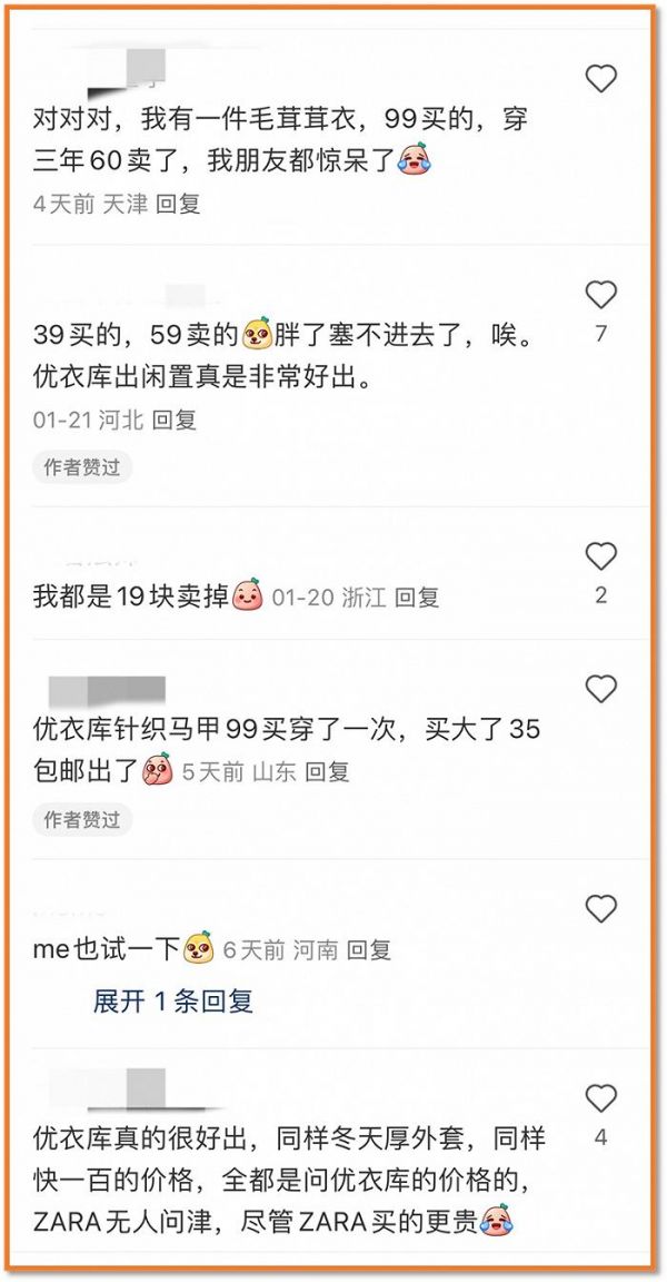 ● 我有一件优衣库毛茸茸衣,99元买的,穿了3年60元卖了,我朋友惊呆了;