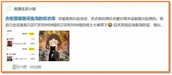 图 | 在许先生社媒上留言的用户在豆瓣上,有一位用户也留言发起话题:衣柜里都是闲鱼淘来的优衣库。该帖子目前共收获474个赞,327个收藏,68个回复。