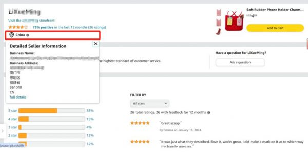 近日,亚马逊美国站的页面发生了重大变化,清晰显示出卖家店铺所在的国家位置。比如,一位福建厦门卖家的店铺,被明显地显示“China”的地理位置。