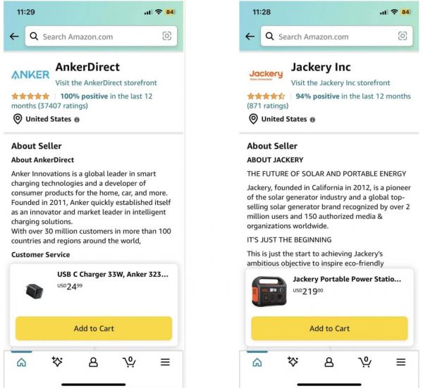 许多在美国布局本土店铺的大卖家包括安克创新旗下的Anker Direct、华宝新能旗下的Jackery等,都显示了美国的地理标志。
