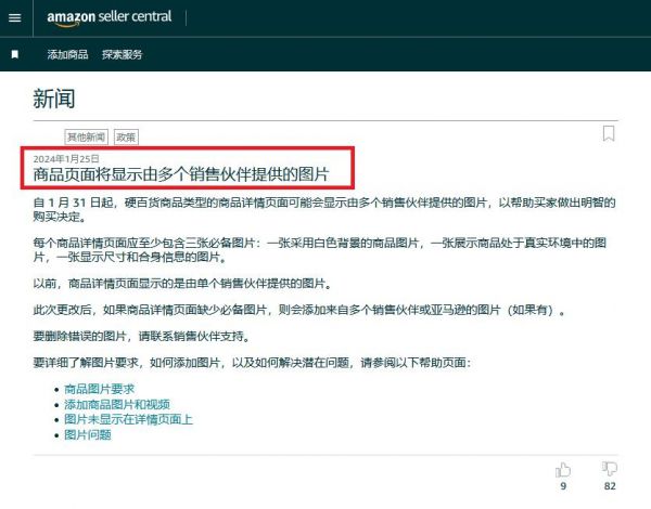 亚马逊最近又发出了一个重要的通知:从1月31日开始,硬百货商品类型的商品详情页面将显示多个销售伙伴提供的图片,以便帮助买家做出明智的购买决定。
