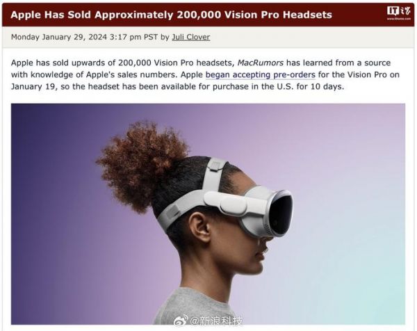 消息称苹果已在美预售超20万台头显苹果头显已获近7亿美元收入