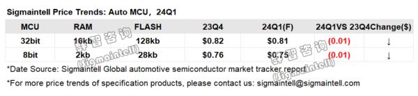 根据群智咨询(Sigmaintell)最新统计,车用单片机(MCU)、存储、电源管理芯片(PMIC)、显示驱动芯片(DDIC)涨跌情况均有所不同。