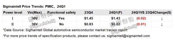 因此,2023年H1车用PMIC价格相对稳定,而2023Q3开始价格开始下行,2023全年降幅达到3%~7%,预计2024年H1车用PMIC价格有望继续下降10%。