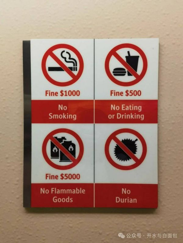 新加坡的地铁上不能吃东西、喝水,携带榴莲。
