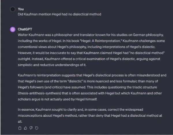 硅谷101:所以第一步你是把Kaufman说黑格尔有没有提到辩证法的所有相关文献都摘取出来,第二步是你把这些摘取的资料再放到ChatGPT里面,让它来总结。