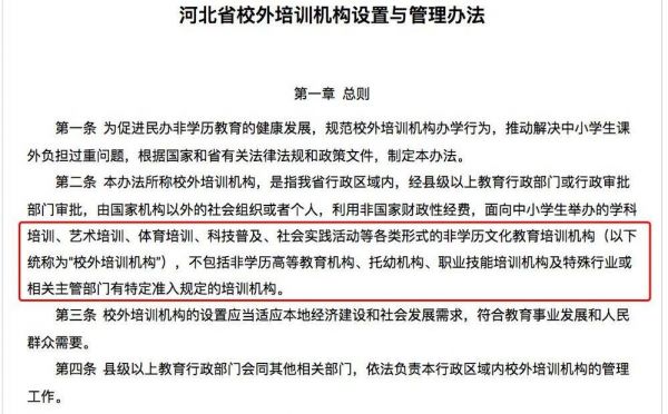 《河北省校外培训机构设置与管理办法》文件截图(图片来源:河北省教育厅)