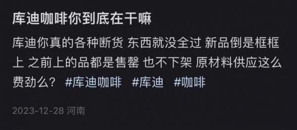 如今,库迪在产品侧没有大单品支持、在营销侧没有好的口碑、在供应链端还会时不时面临缺货问题,这些问题得不去解决,反而推行自动订货、强制卖酒,联营商的信心或将进一步受损,甚至可能会选择加快离场。