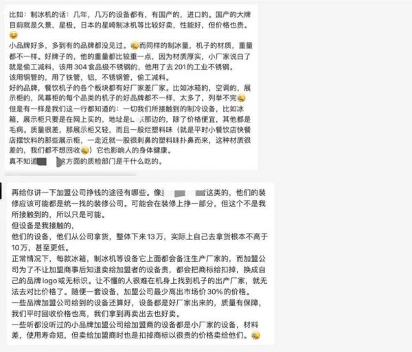 就算拥有充足的预算,一些加盟商也会在看到品牌方运来的厨具时感受到不同的“算盘”或“诚心”。