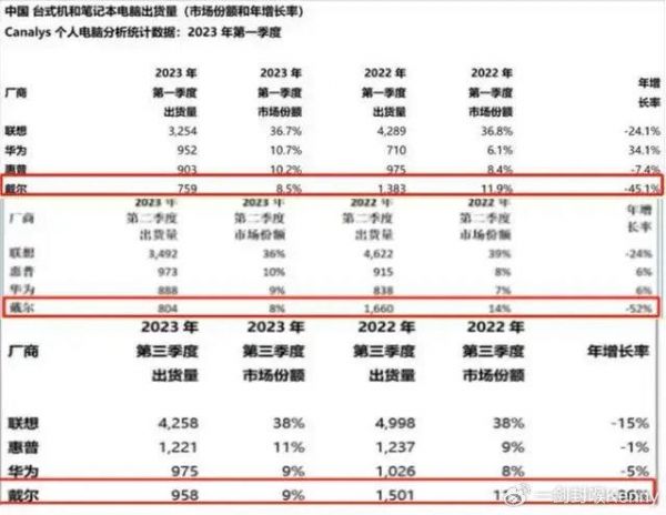 但从2022年到2023年前面几个季度,一整年的时间都没站出来辟谣,最后当销量腰斩时来辟谣了,值得相信么?所以很多消费者并不买账,最终造成了戴尔在中国市场的巨跌。