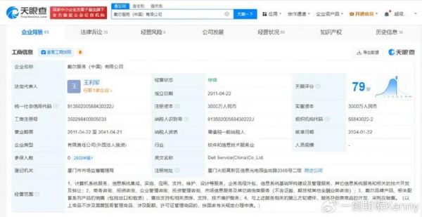 该公司成立于2011年4月,法定代表人为王利军,注册资本3000万人民币,经营范围包括戴尔品牌产品、相关配套系列产品的销售(包括出口和租赁)、售后支持和相关质保、支持、技术维护服务等,由DELL ASIA HOLDINGS PTE.LTD全资持股。