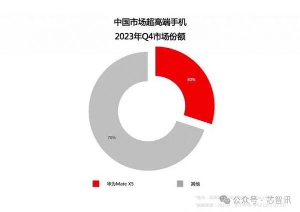 在2023年四季度国内热销的折叠屏机型方面,华为Mate X5更是斩获了近30%市场份额,在大尺寸折叠屏品类中占比更是高达52.37%。