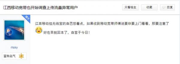 据了解,包括四川、浙江、上海等省市的中国联通运营商开始核查 “异常大流量宽带问题”,当用户的宽带账户存在大量上传数据的情况,可能会直接封禁用户账户,需要客服安排工作人员上门核实之后才会解封。
