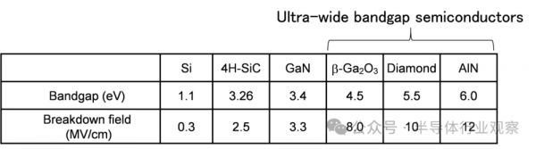 因此,正在开发用于功率器件的宽带隙半导体,例如碳化硅(SiC)和氮化镓(GaN)。击穿场大于SiC或GaN的UWBG半导体进一步提高了功率器件的性能(图3)。UWBG 半导体包括 AlN、金刚石和氧化镓 (Ga2O3 )(表 I)。对于AlN功率器件,理论上功率损耗预计仅为Si的5%、SiC的35%、GaN的50%。