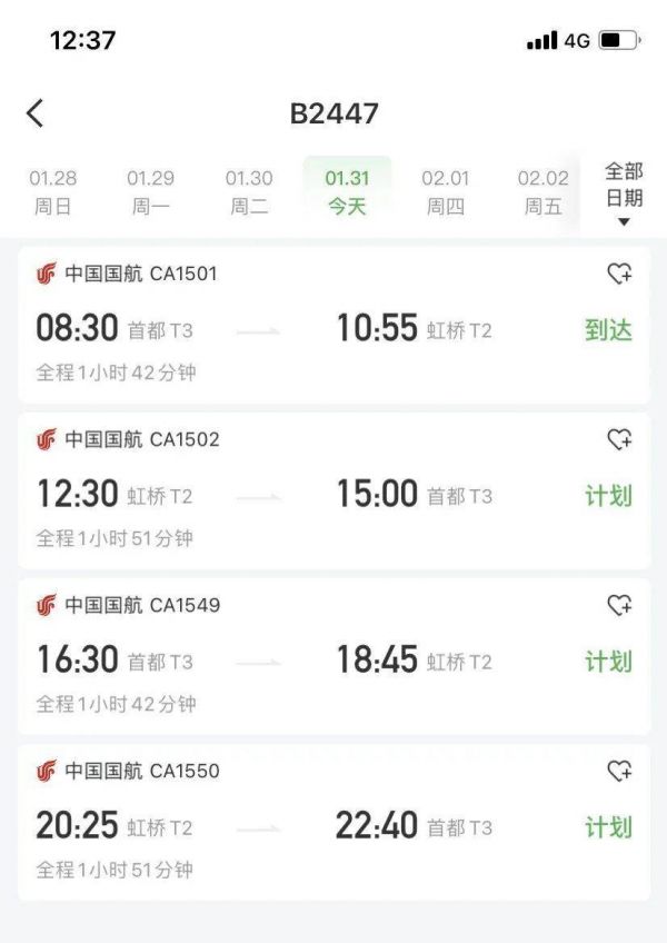 如果保养得当,大龄飞机当然也有用武之地。比如1995年2月交付的国航B-2447号,机龄已经29年,如今仍然每天执行多个航班,仅在1月31日这一天,就飞了2趟北京=上海往返,合计4个航班。