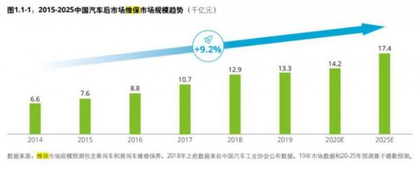 据德勤发布的《2020 中国汽车后市场白皮书》显示,中国汽车维保市场规模将在 2025 年达到 1.74 万亿元。