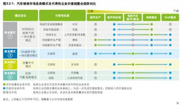 据德勤的整理研究,博世,米其林驰加等传统配件生产商以打通配件生产供应链为切入点,向下游延申为客户提供维保服务,这种传统一体化整合模式一般不着重布局线上电商或流量平台。