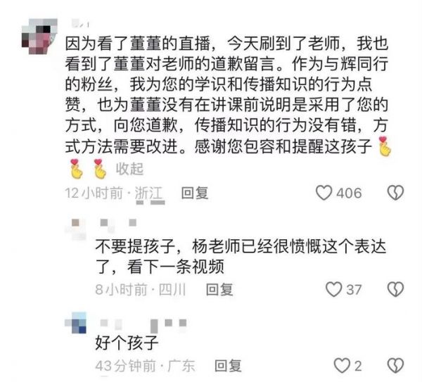 还有“与辉同行”的支持者认为,董董已经道歉了,是杨藩还在不依不饶。