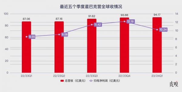 数据来源:星巴克财报,图内季度为星巴克财季,星巴克23/24Q1即自然年2023年10月至2023年12月