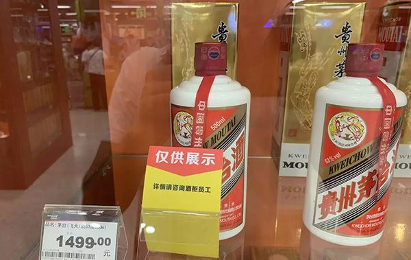 记者走访了深圳彩田路华润万家,橱窗中2019年的飞天茅台标价为1499元/瓶,不过旁边特意用黄色醒目标签提示“仅供展示,详情请咨询酒柜员工”。关于抢茅台,酒柜员工还是有心得的,她告诉记者:“可以抢到的,每天上午10点和下午3点两个点放货,提前两分钟开始准备比较好抢到,我这周就刚抢到了一瓶。”