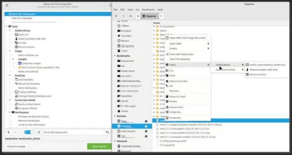 Nemo Actions Organizer 还支持嵌套子菜单,可以让用户创建一个反映其工作流程复杂性的操作层次。