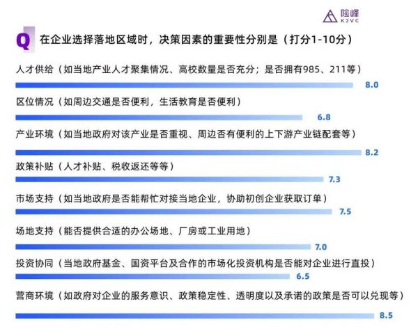 反之,位列三甲的分别是当地的人才供给、产业环境和营商环境,都获得了8以上的平均分。