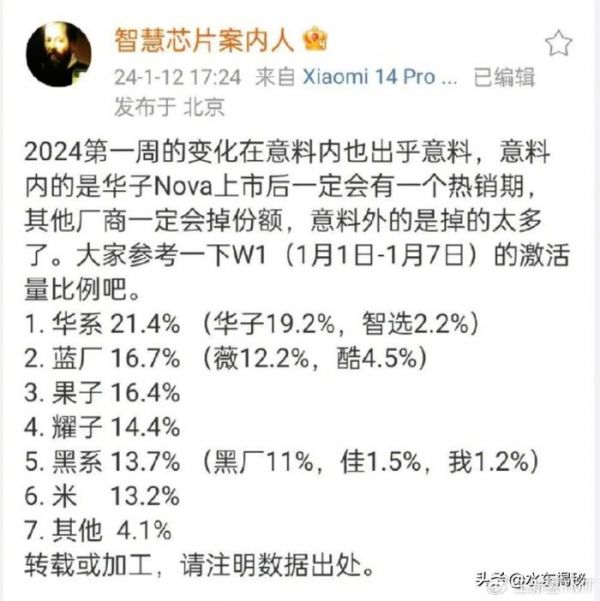 而华为Nova12系列的销量同样火爆,带动华为系激活量快速增长。按照目前的势头,华为手机的增长是确定性的,2024年,华为手机预估销量在6000万~7000万台左右,对应的就是6000万~7000万增量用户。
