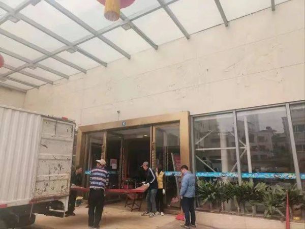走进店内,原本宽敞气派的宴会大厅,如今只剩下四处零散在地、等待打包的各种物品。