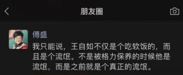 去年11月王自如言论在网上发酵后,猎豹移动创始人兼CEO傅盛在朋友圈发言炮轰:“我只能说,王自如不仅是个吃软饭的,而且是个流氓。不是被格力保养的时候他是流氓,而是之前就是一个真正的流氓。”