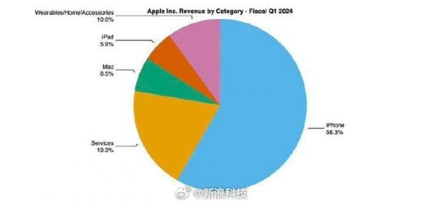 【#iPhone占苹果四季度营收近六成#】苹果公司今天发布了 2024 财年第 1 财季(2023 年第 4 季度)财报。苹果公司没有提供单个设备的数据,但目前已经确认的是苹果在全球拥有超过 10 亿部活跃的 iPhone,图2 为 2024 财年第 1 财季的各项业务占比情况,iPhone 依然是大头,占比为 58.3%。苹果公司首席执行官蒂姆・库克(Tim Cook)表示:“iPhone 的热销推动了营收的增长,而服务业务的营收也创下了历史新高。”(IT之家)#苹果发布2023Q4财报##苹果Q4大中华区营收下降13%#