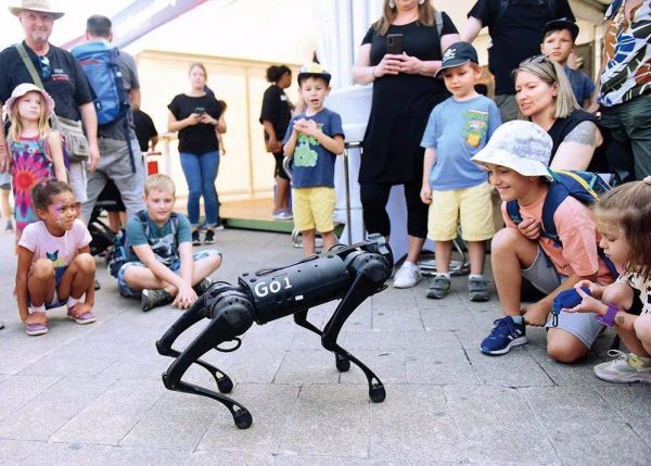2023年9月9日,孩子们在奥地利维也纳举办的公共交通日活动上与机器狗互动 贺灿铃摄/环球杂志