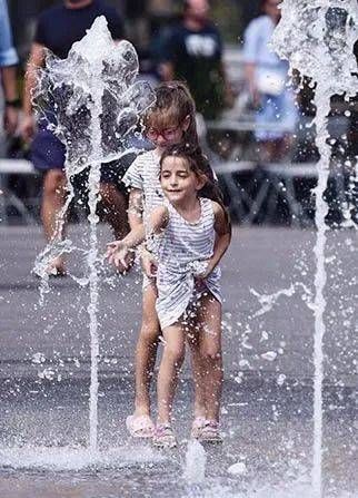2023年7月29日,儿童在奥地利维也纳的一处喷泉戏水 贺灿铃摄/环球杂志
