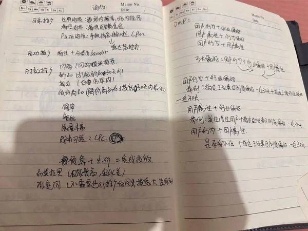她在笔记本上记下学到的各种知识,其中有最基础的Ctrl+C这类快捷键的用法,也有更专业的知识——营销工具有哪些,如何进行订单管理,如何分析用户行为……日常工作中遇到的问题,她问过一次,就立马记在本上。这样的笔记,安萍记了四五本,页数加起来有上千页。就这样,她拥有了属于自己的独家工作手册。可惜的是,在之后几年的数次搬家里,好几本都弄丢了,只剩下了一本。