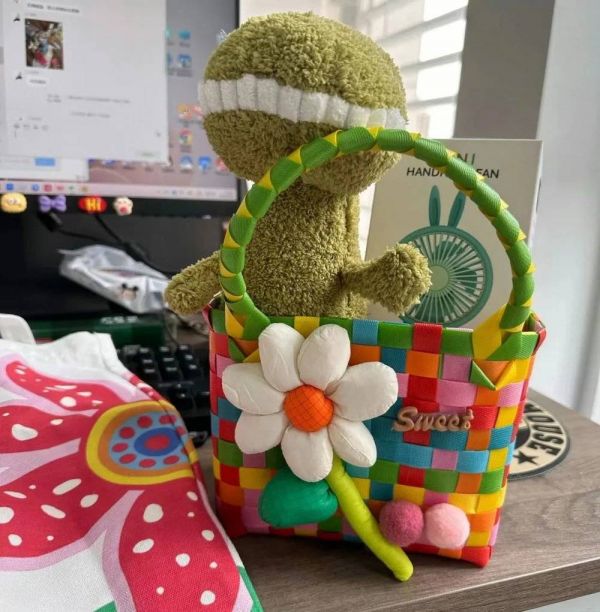 安萍的工位,桌上是公司楼下商场送的美丽“赠品”