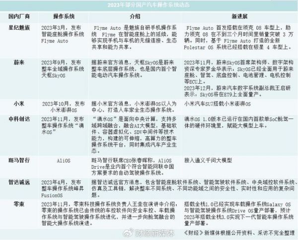 除了硬件层面已看到融合先兆,智达诚远、零束等系统厂商也展开跨域布局。此外,《财经》新媒体梳理发现,2023年,华为、星纪魅族、蔚来、小米、斑马智行、中科创达等国产厂商均在操作系统市场发力,推出具备竞争力优势的操作系统,部署量产。