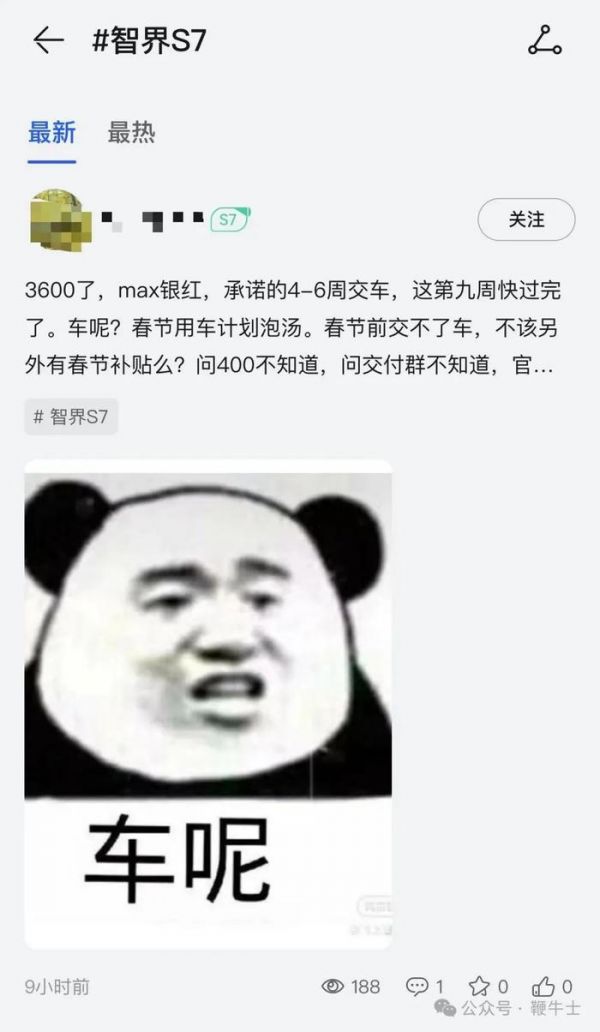 但智界S7交付困难情况依然没有解决,在华为鸿蒙智行App里,不少智界S7准车主在发帖催单。