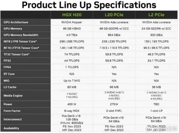 随后英伟达开始开发针对中国区的新的AI 芯片,包括 HGX H20、L20 PCle 和 L2 PCle,这三款芯片均基于英伟达 H100修改而来,以符合美国最新的出口管制政策。