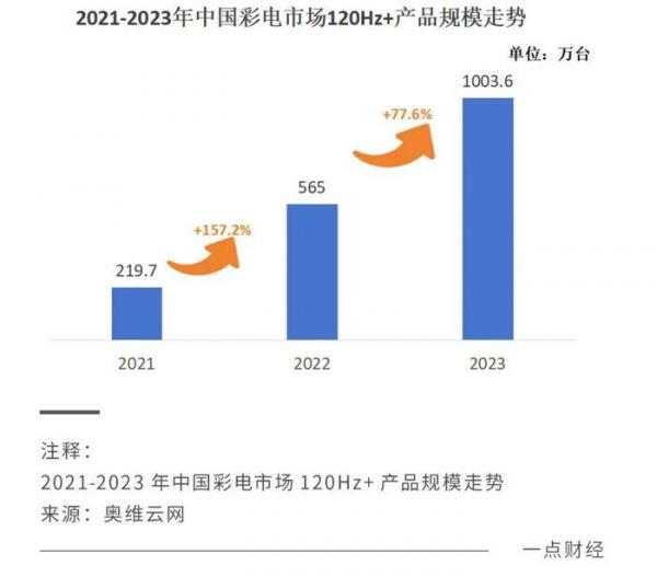这种趋势,已经表现在电商市场的变化上。比如,游戏玩家对于电视的刷新率有着较高的要求,表现在市场上就是:奥维云网(AVC)推总数据显示,2023年中国彩电市场120Hz+产品零售量渗透率已达31.9%,较上一年增加16.4%。