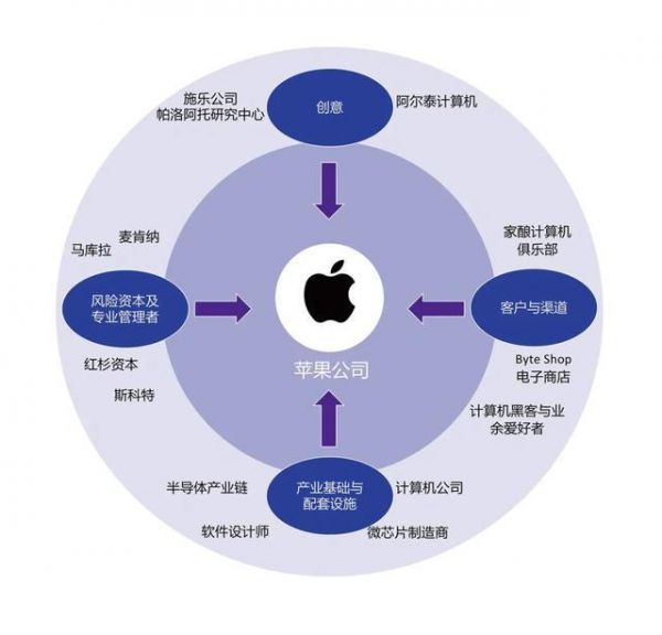不过,这种阶段划分存在一定的局限性:它只关注企业本身,忽略了苹果与周边环境的互动关系,脱离环境(包括行业发展)来单独谈论苹果是偏颇的。于是,我们将苹果公司置于其创业、生存和发展的大环境中,并探讨它们之间的互动关系,发现从生态视角回顾苹果的发展历史会给我们带来不一样的认知。