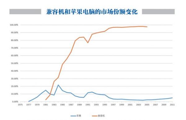 虽然苹果更早推出了图形化操作系统,但在协同演化这一维度上明显不如Wintel,成为其早期市场失败的重要原因。