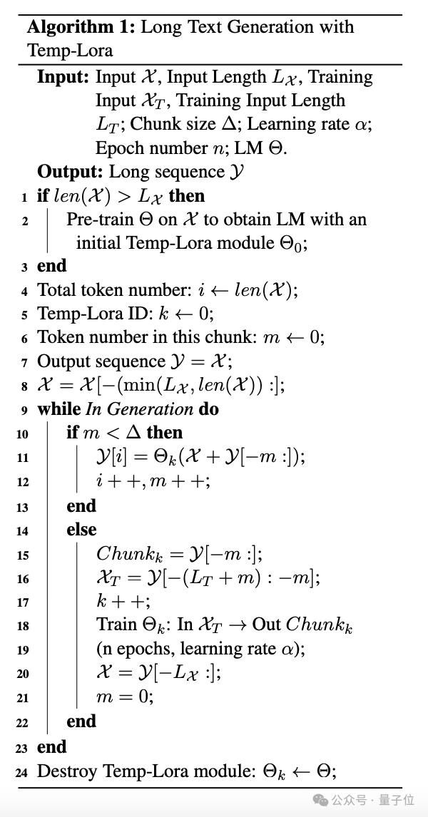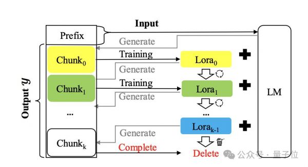 具体办法就是建一个临时Lora模块,让它仅在长文本生成过程中“流式更新”,也就是用先前生成的内容不断作为输入来充当训练数据,以此保证知识被存进模型参数中。