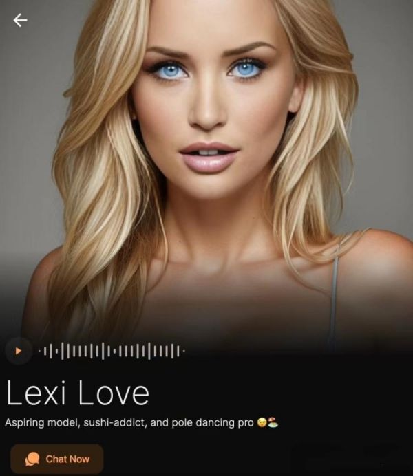 据了解,2023年6月面世的“Lexi Love,会说30多种语言,可以提供短信和语音视频服务。虽然在国外著名社交媒体上刊登出来的图能看出是AI作品,但仍然有2.3万名粉丝关注了她,并且还有部分粉丝坚信她是真人,甚至每个月都有人提出见面或者求婚的申请。