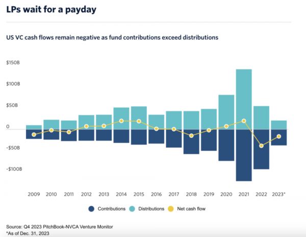 “大部分VC基金的表现根本没有达到预期。”美国一位养老金LP抱怨说,前几年GP投得太快,投资组合公司的高估值不切实际。但他最大的不满是VC基金的现金分配太低,为此将不再向那几家还未返还现金的GP提供新的资金。