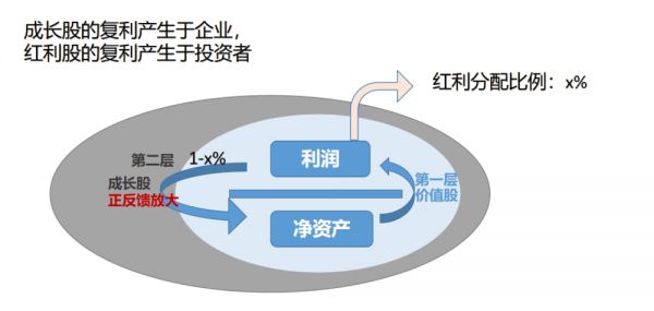 很明显,价值股看中第一层收益,而成长股看重第二层再投资收益,这两者之间最大的区别就在于利润的分配模式: