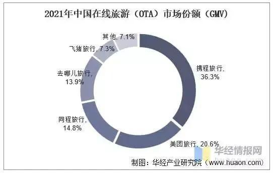 将视线拉回到 2018 年至 2021 年,彼时国内 OTA 平台已形成头部效应。据华经产业研究院数据显示,2021 年,中国在线旅游市场中,携程以 36.3% 的市场份额位列第一 ; 其次是美团,市场份额占 20.6%; 同程、去哪儿、飞猪分列第三、四、五名 ; 而马蜂窝、穷游网、驴妈妈等则被归入 " 其他 "," 其他 " 市场份额加在一起仅 7.1%。