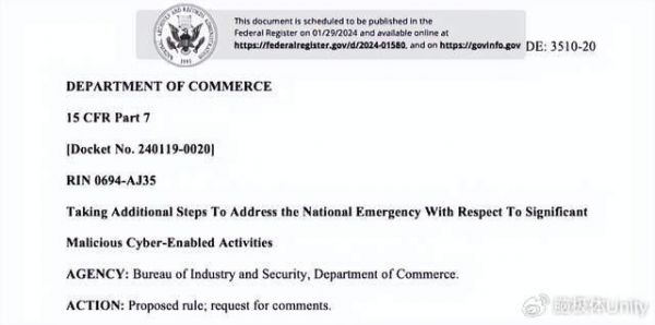 前不久,美国商务部出了一份《采取额外措施应对与重大恶意网络行为相关的国家紧急状态》提案,提出:禁止中国公司使用美国的云计算资源来训练AI模型。