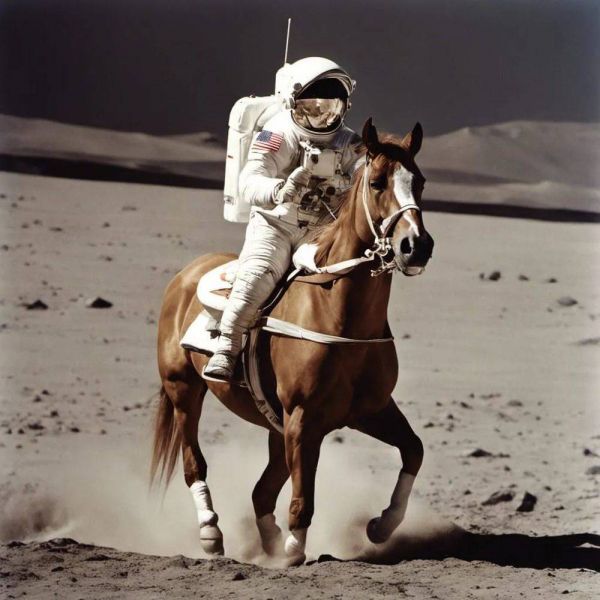 比如,让他画一个骑在马上的宇航员,它就能很快创作一张(看起来像是真的)相关照片。