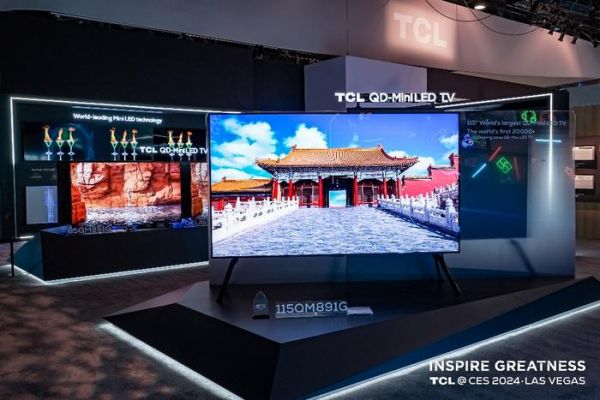 出现在CES 2024的115吋全球最大的QD-Mini LED高端巨幕电视图源:TCL电子
